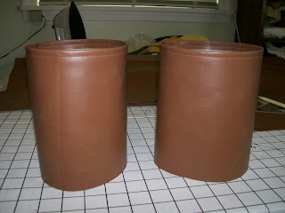 I found some vinyl remnants on the clearance table at Hobby Lobby and snatched up a large sheet of it for only $1.50.... which will be enough for several boots and then some. I measured around the top of the boot, added 1/2" seam allowance, and cut it to the length I wanted it. I made 2 of these; one for each boot, then, I stitched the ends together, right sides together, like you see in the picture above.